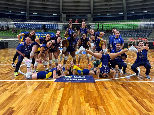 A equipe feminina sub-21 de comemora a classificação para a final nos Regionais